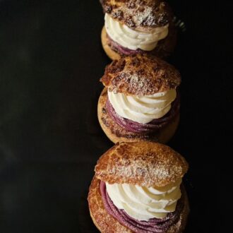 紅芋の深い味わいとカスタードのまろやかさが奏る季節のモンブランシューです。