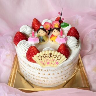 人気のショートケーキに、かわいいひなまつりデコレーションの飾りを飾りました。※ぼんぼりがローソクになっています。※おだいりさまとおひなさまはチョコレート又は砂糖菓子でできております。